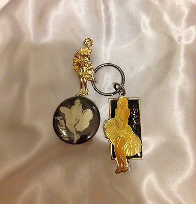 Marilyn Monroe 3 VINTAGE Collector items. 2 Pins and Key chain rare