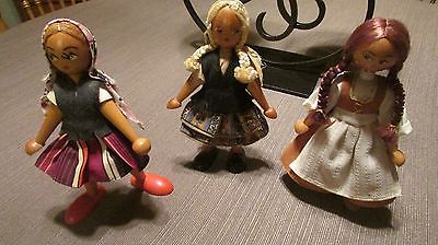 Antique Polish Jointed 7" Wooden Peg Dolls~Girls Vintage Lot of 3