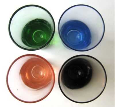 Set of 4 Vintage Colored Shot Glasses Depression Glass?