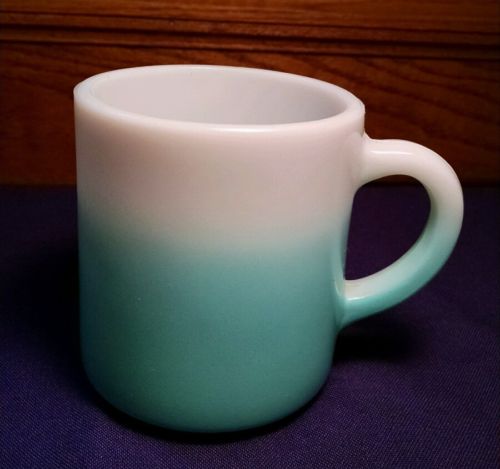 Vintage Hazel Atlas Turquoise Fade Milk Glass Coffee Mug