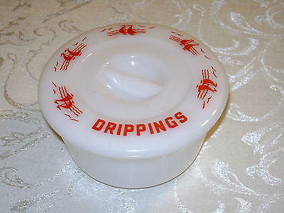 Vintage MCKEE Red Sailboat Ship Milk Glass Drippings Grease Jar w/ Lid