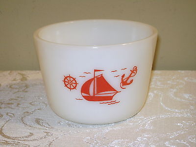 Vintage MCKEE Red Sailboat Ship Milk Glass Bowl