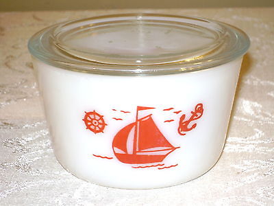Title (ebay affiliate link): Vintage MCKEE Red Sailboat Ship Milk Glass Round Refrigerator Dish w/ Lid
