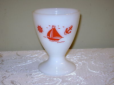 Title (ebay affiliate link): RARE! Vintage MCKEE Red Sailboat Ship Milk Glass Egg Cup or Footed Tumbler