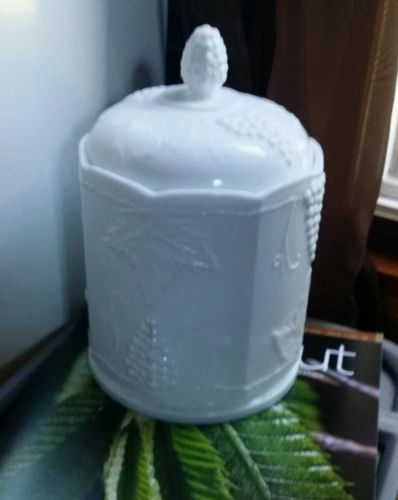 Title (ebay affiliate link): Vintage Indiana Glass White Milk Glass Harvest Grape Canister Jar 8 3/4"