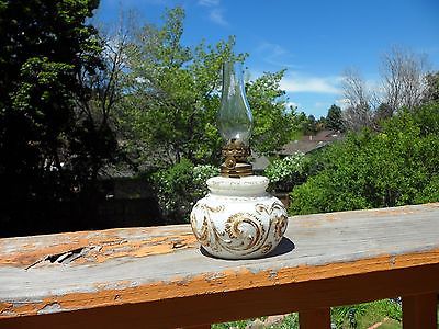 EAPG MINI OIL / KEROSENE LAMP - MILK GLASS - CONSOLIDATED LAMP CO. P & A BURNER