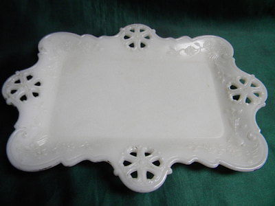 Title (ebay affiliate link): 7 1/4" x 10" Opaque White Milk Glass Wagon Wheel Dresser Tray