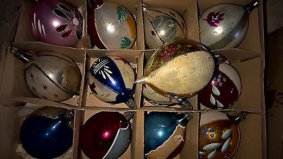 Vtg Xmas FANCY POLAND MERCURY GLASS TEARDROP Ornaments (13)