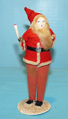 Antique Vtg Xmas SANTA CLAUS w PAPER CANDLE Felt & Pipe Cleaner Celluloid Face