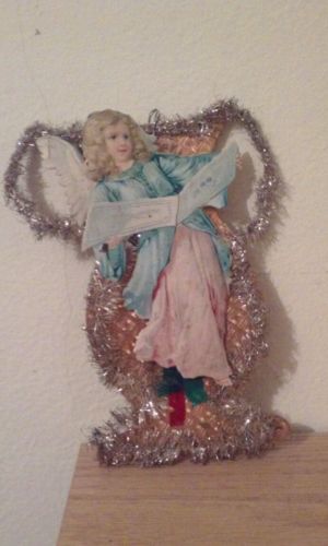 Title (ebay affiliate link): Antique Christmas Victorian tinsel scrap ornament Dresden
