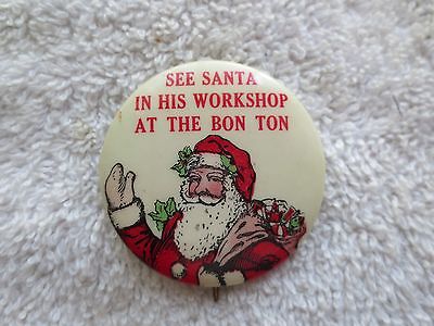 Early Celluloid Christmas Pinback Santa Bon Ton
