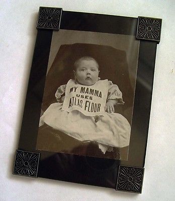 GLASS FRAMED 1920's CUTE LITTLE BABY MY MAMA USES ATLAS FLOUR ADVERTISING SIGN