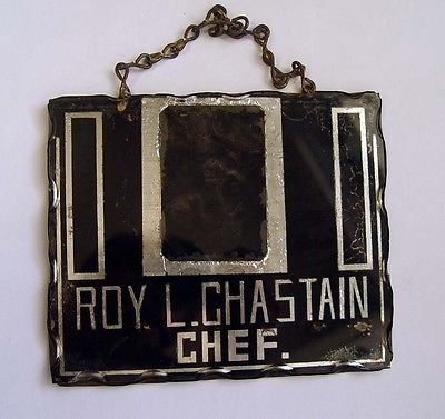 Title (ebay affiliate link): 1920's CHIPPED EDGE REVERSE ON GLASS TIN BACK CHEF RESTAURANT ADVERTISING SIGN