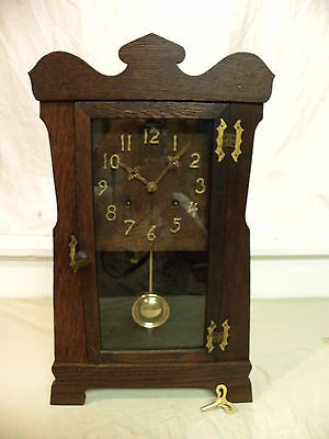 ANTIQUE AMERICAN NEW HAVEN STICKLEY MISSION OAK PARLOR CLOCK CLEAN AND RUNNING