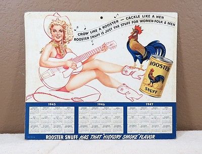 Title (ebay affiliate link): 1947 Rooster Snuff Advertising Calendar w PinUp Cowgirl, original CUTE