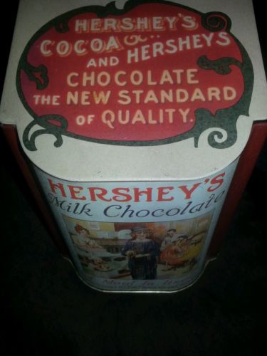 Title (ebay affiliate link): Hersheys Milk Chocolate tin container with hinged lid great advertising