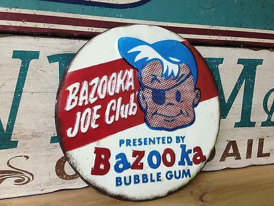 BAZOOKA BUBBLE GUM JOE CLUB EMBOSSED ALL RAISED LETTERING METAL SIGN SHOP