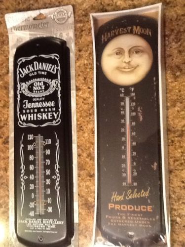Lot of 2 Advertising Thermometer Signs Jack Daniels Whiskey Harvest Moon Produce