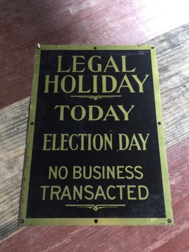 Title (ebay affiliate link): Original RARE 1930's-40's Metal Store Sign- Legal Holiday Election Day- NICE
