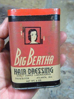 Title (ebay affiliate link): SCARCE Big Bertha HAIR DRESSING TIN - Dolly Dimple Labs - ATLANTA GA.