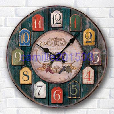 Vintage Round Wall Clock Shabby Chic Style Retro Antique Distressed Home Kitchen