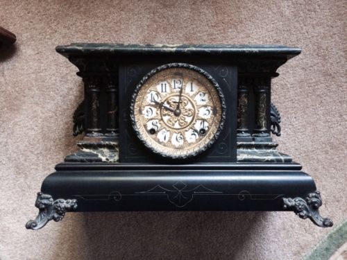 Title (ebay affiliate link): ANTIQUE INGRAHAM MANTEL CLOCK BELMONT , WITH FAUX GREEN MARBLE LOOK