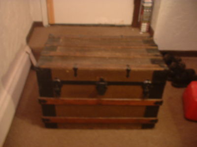 Title (ebay affiliate link): ANTIQUE FLAT TOP STEAMER TRUNK/OAK SLIDES / WITH TRAY
