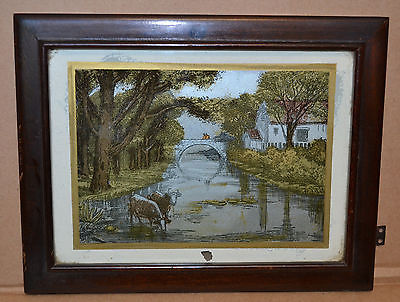 Antique New Haven Waring Banjo Clock Bottom Door w/ Reverse Painted Bridge Scene