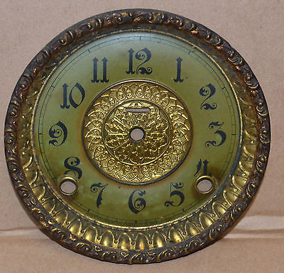 Antique E. Ingraham 8 Day Time & Strike Green Tinted Clock Dial w/ Bezel & Glass