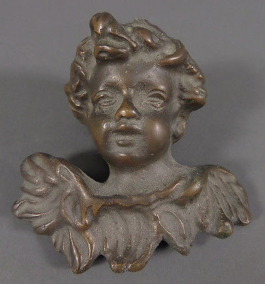 Antique Marked Germany 3" German Bronze Cherub Bust Head Putti Wall Hanging