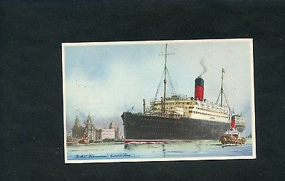R.M.S. "Franconia", Cunard Liner, Tug Boats, 1935 postcard, advertising on back