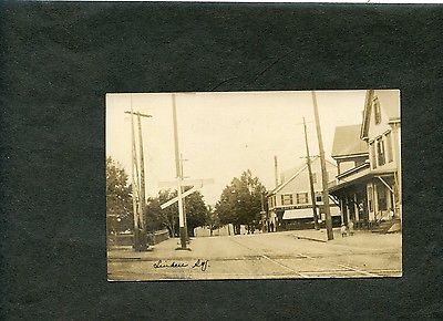 Boston MA, 1906 real photo postcard, Linden Square, Pharmacy, Train Tracks, etc.