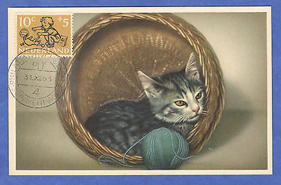 Netherlands Kitten Cat With Yarn Cancelled Last Day Valid Maximum Postcard 1953