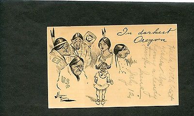 "In Darkest Oregon", 1905 b&w postcard, Signed Murray Wade, Native Americans etc