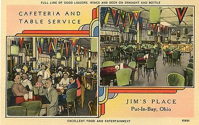 Put-In-Bay Ohio, 1940's linen postcard, Jim's Place, Cafeteria & Table Service