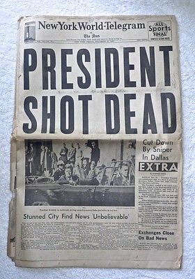 Title (ebay affiliate link): New York World-Telegram Nov 22, 1963 President Shot Dead