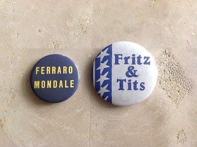 Title (ebay affiliate link): VINTAGE PRESIDENTIAL CAMPAIGN PINBACKS. MONDALE/FERRARO. 1984. LOT OF (2)