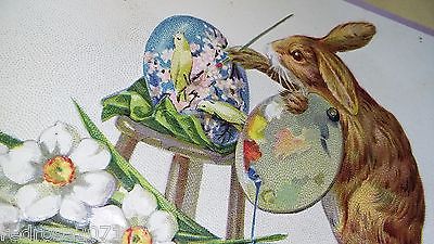 FANTASY old holiday EASTER postcard HUMANIZED Bunny RABBIT painting coloring egg