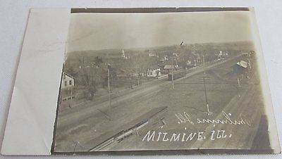1911 RPPC Real Photo Postcard of MILMINE ILLINOIS, Shows Street Car, Trolley