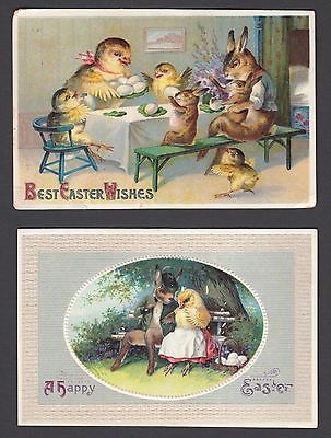 Lot/2 Easter Vintage Postcards Humanized Bunny Rabbits Chicks 1 IAPC Germany