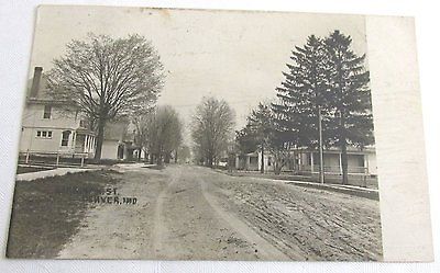 1909 RPPC REAL PHOTO POSTCARD Of Harrison Street DENVER INDIANA, Stores, houses