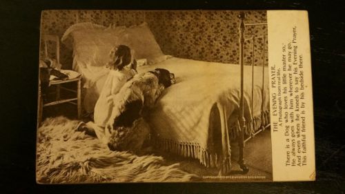 Title (ebay affiliate link): Old undivided back Sheanan's Postcard THE EVENING PRAYER, little girl & dog