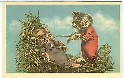 1 of 3 Alfred Mainzer Anthropomorphic Cat "Cat Tickling Her Mate, Asleep in Nest
