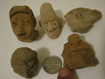5 PCS PRE COLUMBIAN MEXICAN POTTERY ANTIQUITIES OLD HEADS HAND MADE OLD LOT