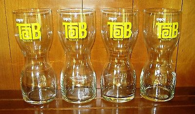 Vintage Yellow Tab Cola Hourglass Shape Drinking Glasses