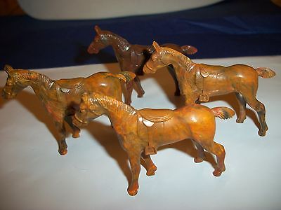 Vintage Western / Farm Playset animals , 4 marbled brown hard plastic horses
