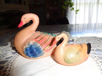 2 VINTAGE CELLULOID SWAN - MAMA AND BABY