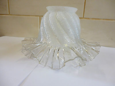 Superb Antique White & Clear Vaseline Glass Twisted Fringe Edge Lamp Shade