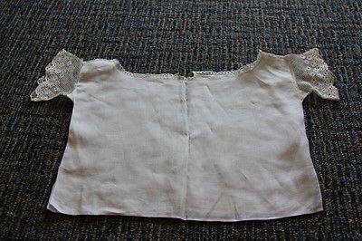 Lovely Antique Victorian FANCY Linen DOLL BLOUSE Dainty LACE Sleeves Shoulders