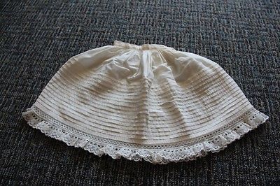 Lovely Antique White Cotton FANCY DOLL PETTICOAT Half Slip Pintucks Pleats LACE